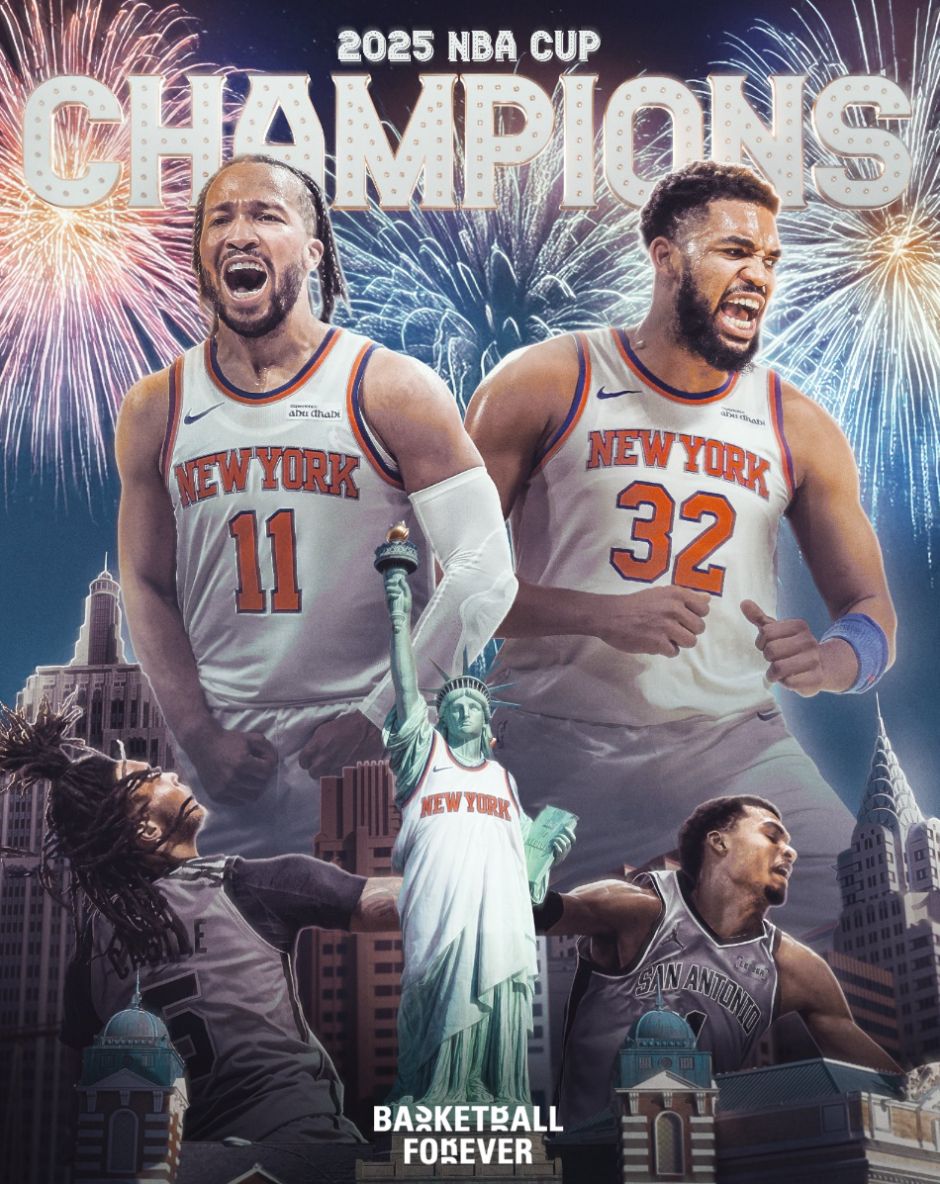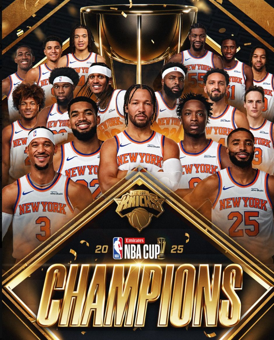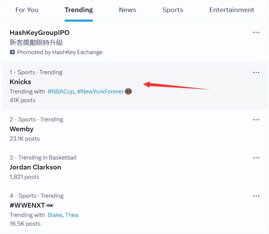 尼克斯拿下杯赛冠军直接登上了全美第一热搜,因为这是尼克斯自1973年后第一个冠军,否管是总冠军还是杯赛冠军,总之是冠军。