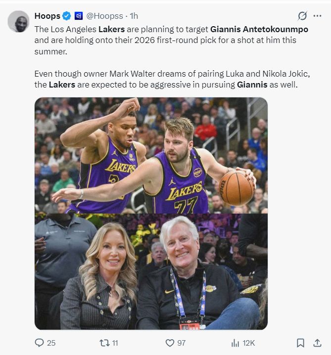 北京时间12月18日,湖人TA记者约什-布哈在播客节目中说道,湖人队正在计划瞄准扬尼斯-阿德托昆博,他们保留了2016年首轮签以便在2026年夏追逐扬尼斯,或者是休赛期追求扬尼斯这个级别的球星。