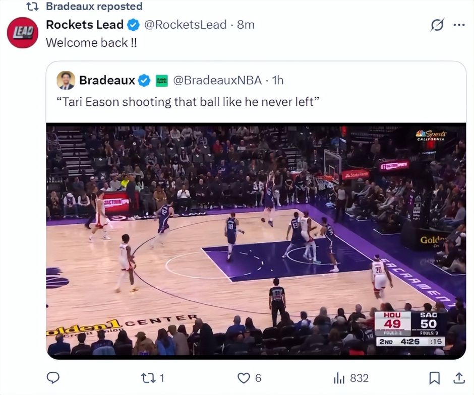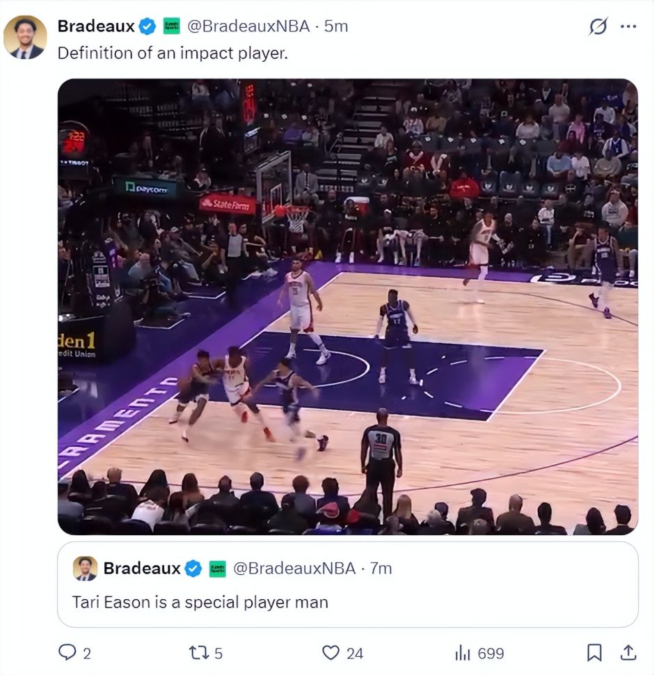 火箭记者Bradeaux继续发声:伊森是一个非常特别的球员。