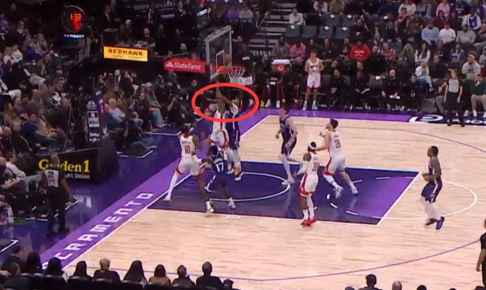 第四次同样是漏判,发生在距离加时赛结束还有1分13秒。申京在对方禁区内停留时间超过3秒,这是一次漏吹的三秒违例。火箭获利,国王吃亏。