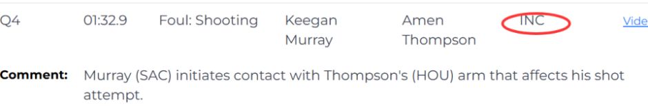 第二次是漏判,发生在距离第四节结束还有1分32秒,国王的穆雷在防守时与火箭的汤普森的手臂发生接触,干扰了后者的投篮动作,这应该吹防守犯规。这次漏判是国王获利,火箭吃亏。