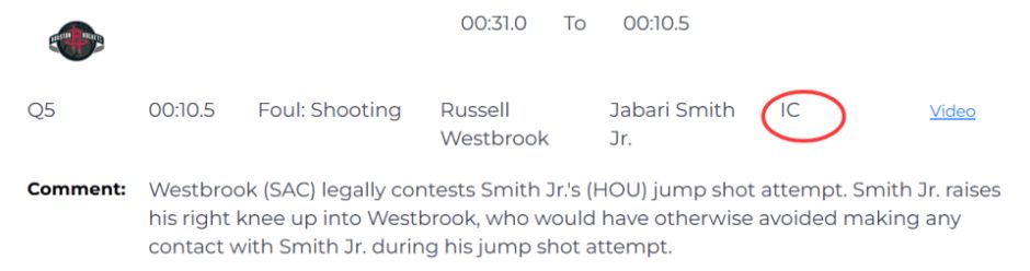 第五次是错判,发生在距离加时赛结束还有10.5秒。裁判报告指出,威斯布鲁克对小史密斯的跳投完成了一次合法干扰。小史密斯在投篮时抬起右膝撞到威斯布鲁克,而后者原本完全可以在防守跳投的过程中避免与小史密斯产生任何身体接触。所以不该吹威少的防守犯规,同样是火箭获利,国王吃亏。