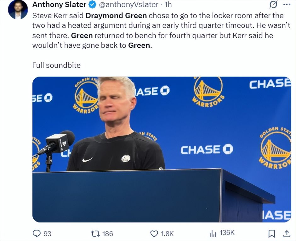 科尔在赛后回应与追梦的冲突:我和德雷蒙德的确有争吵,而且是正面的冲突,我让他回更衣室冷静一下,其余的事就是私事了不方便说。