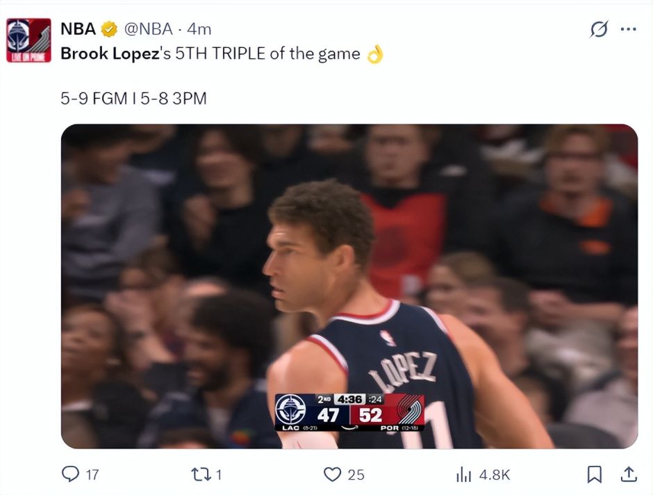 北京时间12月27日,NBA常规赛,快船以119-103逆转开拓者拿到三连胜。这是属于大洛的夜晚,他的封盖数升至历史第17位,单场9个三分球生涯18年新纪录,31分快船生涯新高,上一次在常规赛单场30分还要追溯到2023年11月25日,换言之是时隔733天再砍30+。