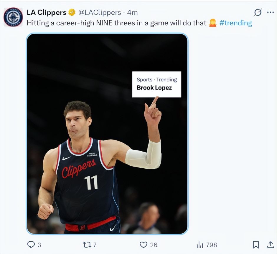 这场比赛37岁的老将大洛登上全美第一热搜,这是他的生涯之夜,同样也是大洛快船生涯之夜,他单场命中9个三分球生涯新高。