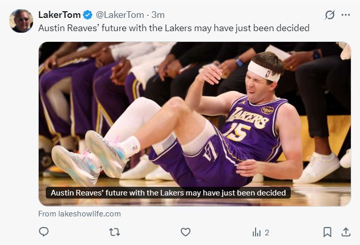 随着湖人核心之一的奥斯汀-里夫斯遭遇伤病,这支湖人本赛季的前途又变得黯淡起来,根据Shams的说法,里夫斯遭遇左腿腓肠肌二级拉伤,至少需要四周的康复时间,一般来说是4-6周。