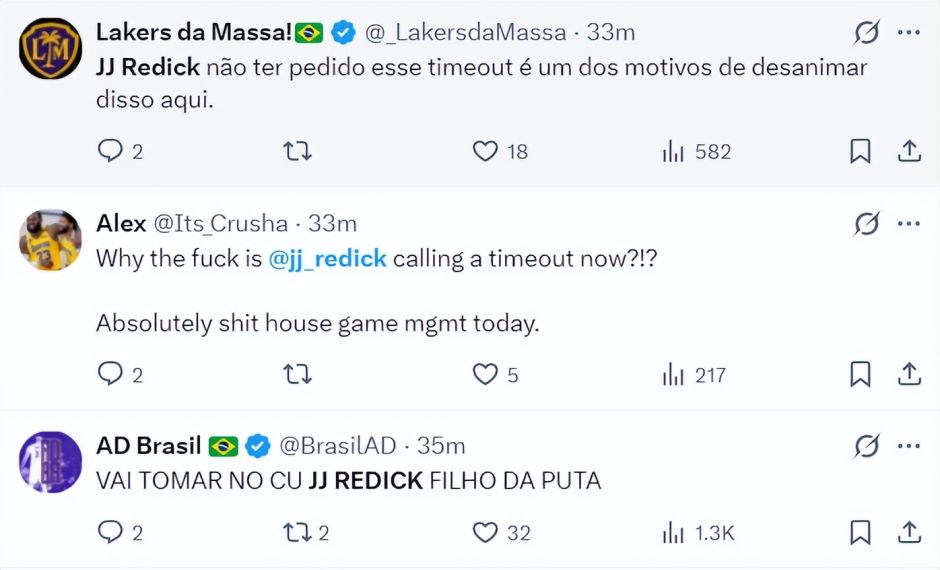湖媒:雷迪克根本没有请求暂停,这才是我对湖人失去信心的原因之一。这场比赛真的糟透了。