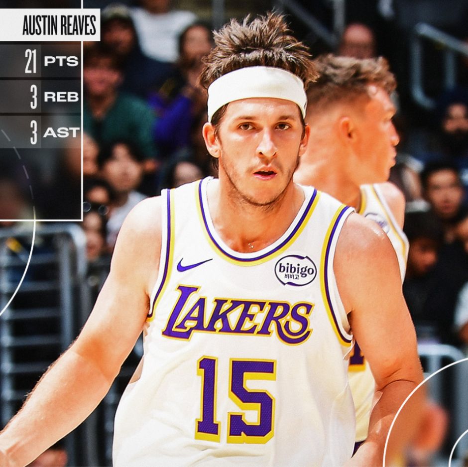 里夫斯目前已经确定会在湖人打先发,他这两场季前赛都非常高效,对阵太阳。21分钟,11中6,三分5中1,罚球7中7,拿到20分3篮板2助攻;对阵勇士23分钟,10中7,三分4中2,罚球6中5拿到21分3篮板3助攻1抢断1盖帽,两场比赛合计41分5助攻。