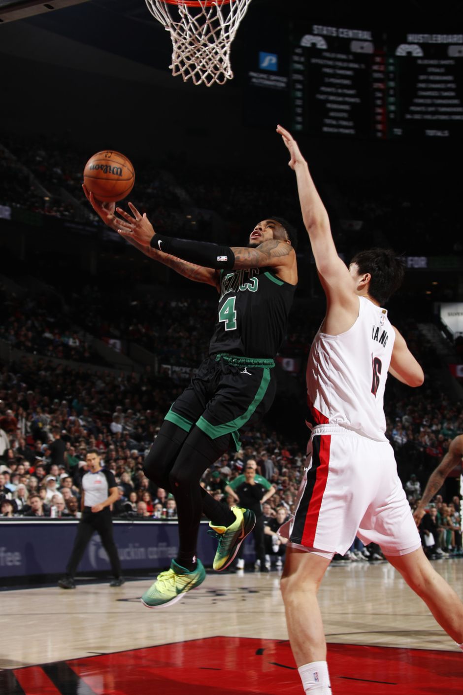 末节比赛,双方在前3分钟均是只得到3分,开拓者内外开花逐步取得95-90领先优势,布朗中投得分。卡马拉三分命中,豪泽与冈萨雷斯各中一记三分追到98-98,卡马拉抛射命中,怀特上篮追平。乐福三分命中,布朗肘击阿夫迪亚被吹罚一级恶意犯规,阿夫迪亚两罚不中。科塔暴扣,夏普与布朗对攻一记三分,双方随后接连打铁不中,夏普抢断造犯规两罚一中,阿夫迪亚上篮,怀特三分追到差1分。克林根关键补篮2+1扩大4分优势,布朗致命失误,阿夫迪亚被犯规两罚全中扩大6分优势,凯尔特人已经无力回天,最终开拓者险胜凯尔特人。